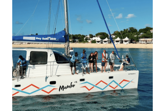 Set sail aboard Mambo No.5, our newest luxury catamaran, for a full-day escape to Anguilla’s stunning Rendezvous Bay. Enjoy the turquoise waters, pristine white sands, and breathtaking views of Maundays Bay with Cap Juluca as your backdrop. Relax on spacious deck nets, swim in crystal-clear waters, and savor a delicious buffet prepared by the crew. This unforgettable Caribbean sailing experience is the perfect way to create lasting vacation memories with Aqua Mania Adventures.
